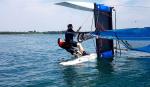 Perfekte Bedingungen: Sonne, schwachwindig, warmes Wasser. Zur Einführung machten Sven und Kai alles im hüfttiefen Wasser vor, danach ging es unter Begleitung des Motorboots raus auf's offene Wasser, wo jeder nach HErzenslust selber kentern und aufrichten durfte. Highlight war das Durchkentern des Vereinsboots, das Aufrichten ging unter diesen Bedingungen nur mühsam und mit vereinten Kräften.